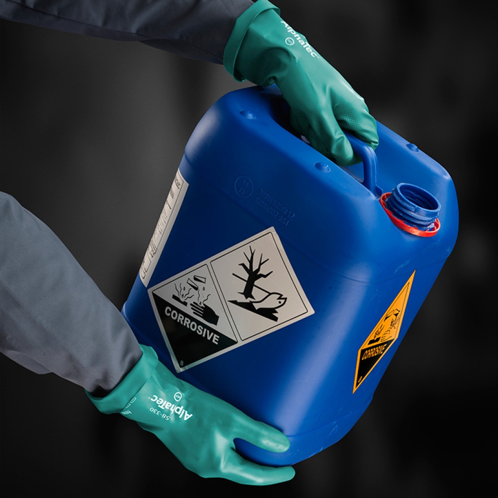 Como medida de precaución, la película de nitrilo superior proporciona una avanzada protección química contra la exposición accidental a bases, aceites, combustibles, algunos disolventes, grasas y grasas animales.